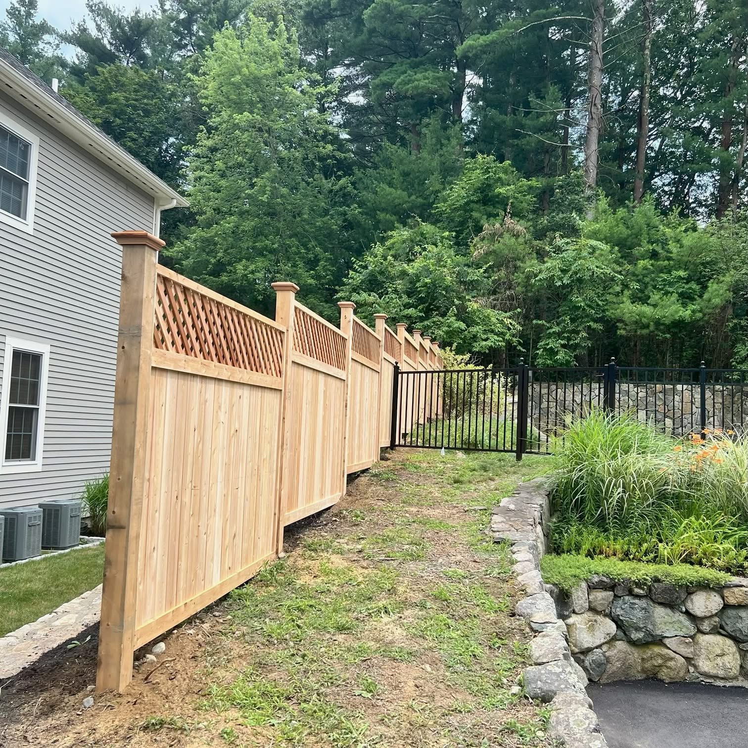 For this Wayland homeowner, we designed and installed an elegant decorative cedar board fence that provides both structure, beauty, and privacy.